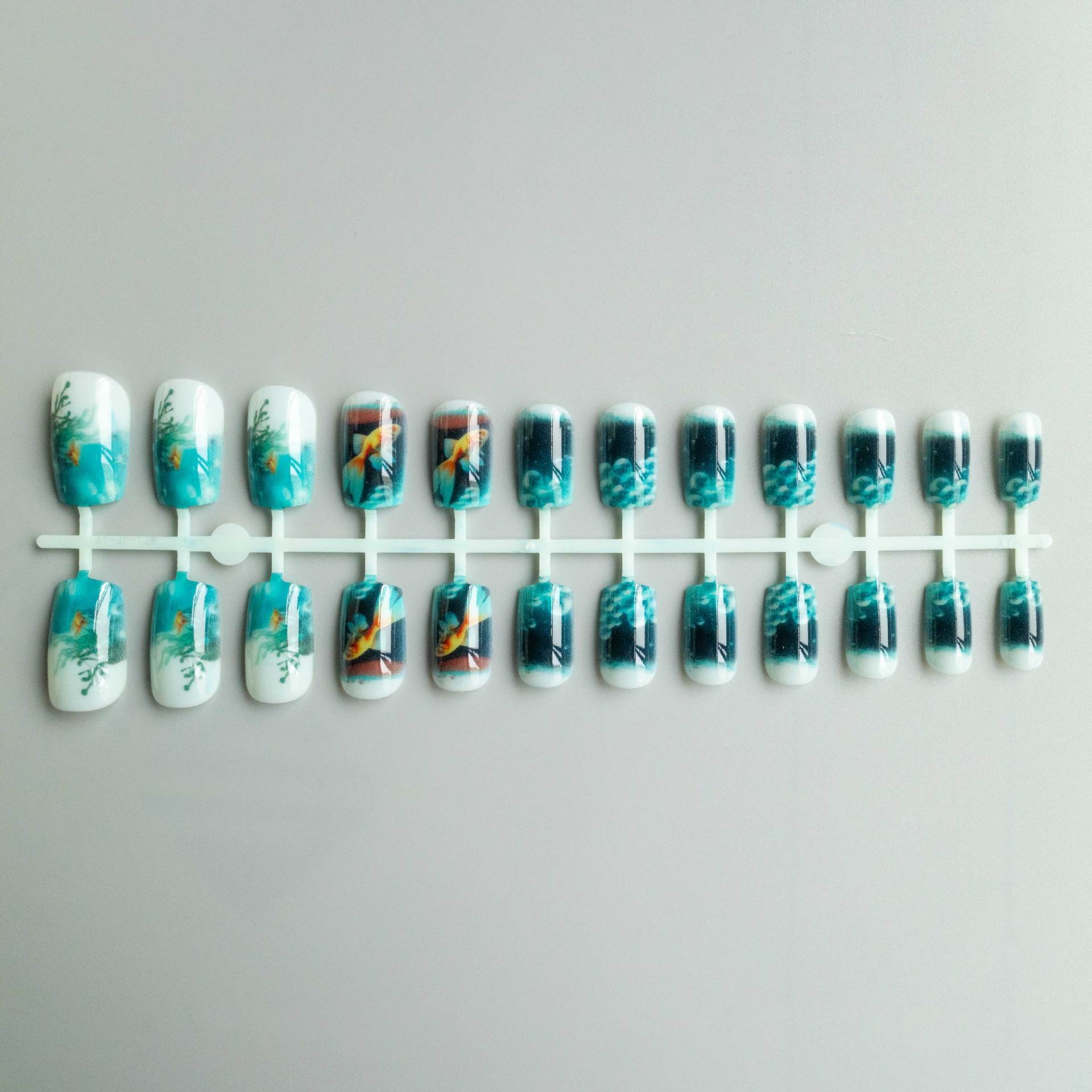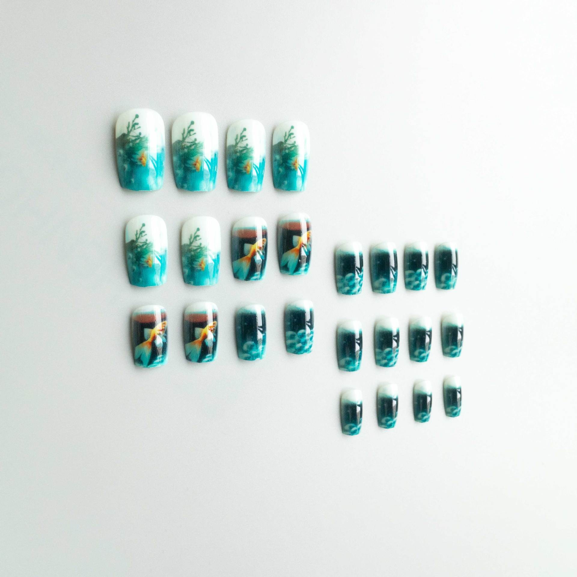 Style: Water tank illusion nails with embedded fish & bubble effect