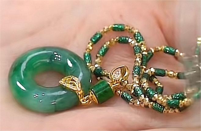 - 链条: 翡翠串珠 + 金色点缀