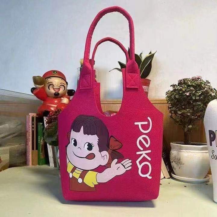 Showcase your playful side with the Peko-chan felt bag! Featuring the iconic Japanese mascot in cheerful poses, this vibrant bag is both functional and fashionable. The sturdy felt fabric and reinforced handles make it a reliable choice for carrying books, snacks, or daily essentials.
